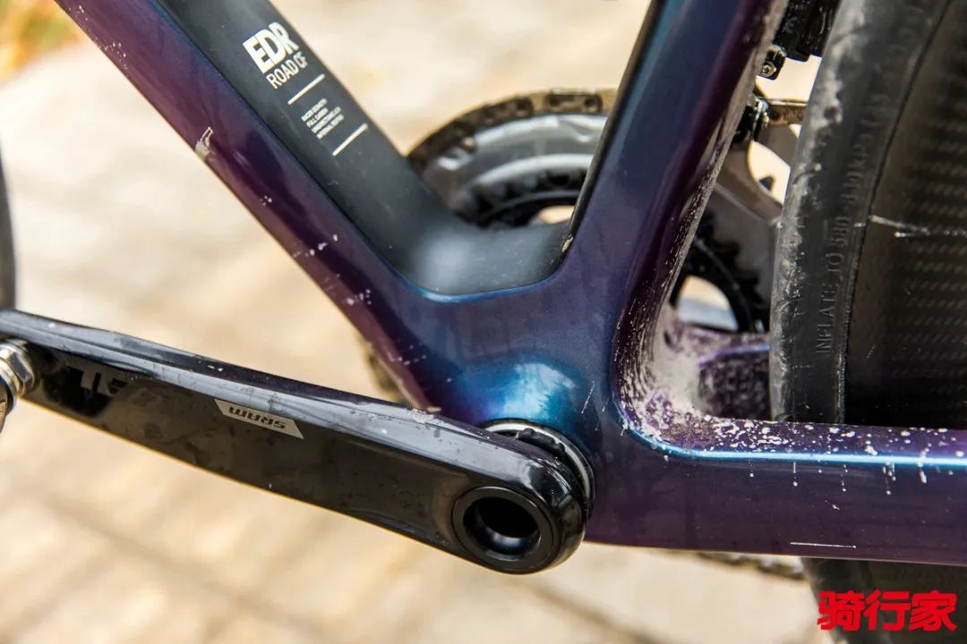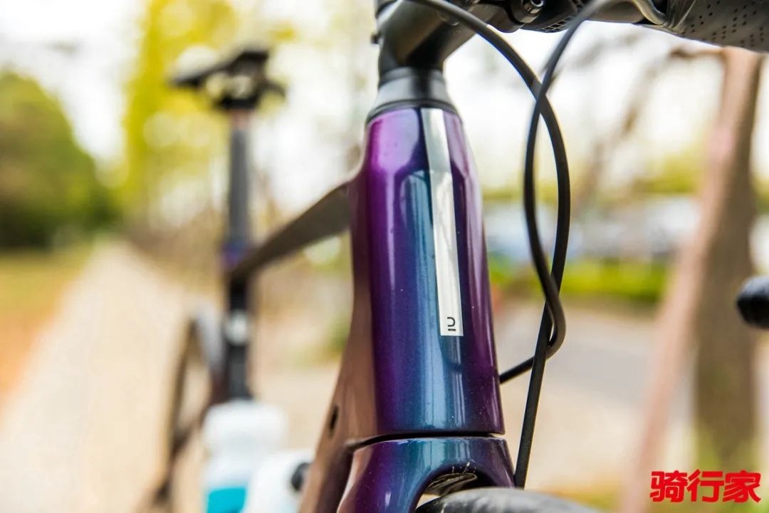 在测试骑行的过程中,EDR Road CF的缓震性非常不错。看似普通的车架,没有任何特殊结构设计,并且搭配的弯把还是铝合金材料,但是却没有铝合金弯把的那种颠簸感受。在途经颠簸路面时,这台碳纤维车架给我的震动回馈非常的平和。车架缓震性让颠簸感受一晃而过,可以始终保持在稳定地踩踏骑行。