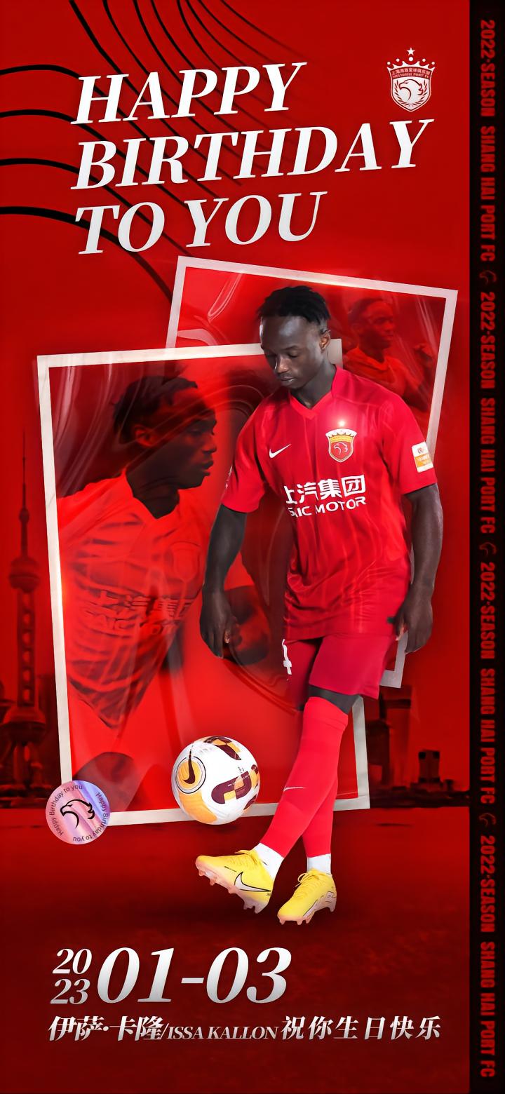 1月3日是中超上海海港外援伊萨·卡隆27岁的生日。当天,上海海港足球俱乐部官方为他发布海报,送上了生日祝福。