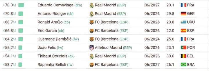 瑞士知名体育研究机构CIES瑞士天文台本周公布了足坛球员的最新身价。在西甲球员身价排名中,皇马攻击手维尼修斯以1.9亿欧排名西甲球员第一,佩德里和加维分列第二和第三。