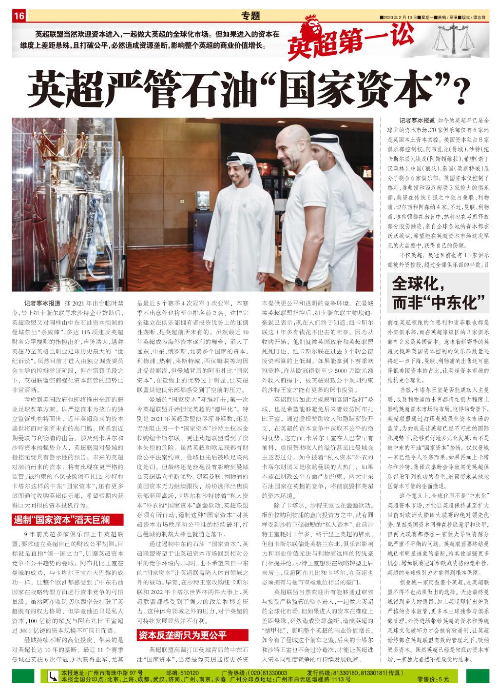 考虑到英国政府也即将推出全新的职业足球改革方案,以严控资本为核心的独立监管机构将面世,近年英超迎来的资本盛世将面对前所未有的高门槛。联系到近期曼联与利物浦的出售,涉及到卡塔尔和沙特资本的强势介入,英超联盟对曼城的指控无疑具有警示性的预告:未来的英超对汹涌而来的资本,将有比现在更严格的监管。被约束的不仅是像阿布扎比、沙特和卡塔尔这样的中东“国家资本”,还有更多试图通过收购英超俱乐部,希望短期内获得巨大回报的资本投机行为。
