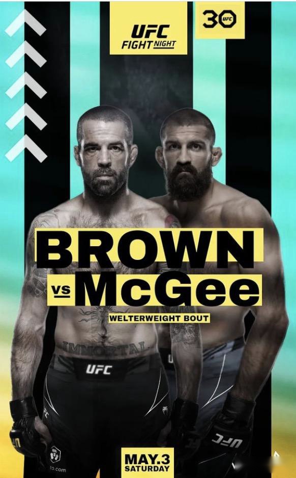 一场次中量级美国老将内战:“不朽者”马特.布朗(23胜19负)VS.“粉碎机”考特.麦吉(21胜11负),比赛将于5月13日的格斗之夜上举行。