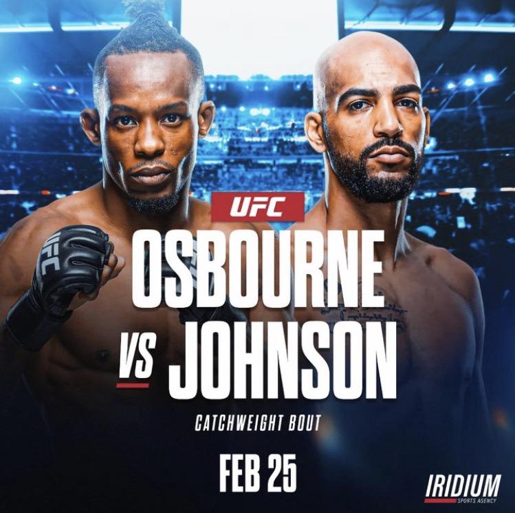 由于德尼斯.邦达尔受伤退赛,牙买加裔美国选手“牙买加轰动”奥德.奥斯本(11胜5负1无结果)将在130磅协议体重,面对紧急替补的美国选手“InnerG(一种无所畏惧的精神状态)”查尔斯.约翰逊(13胜3负),比赛将于2月25日的UFC 拉斯维加斯70 上举行。