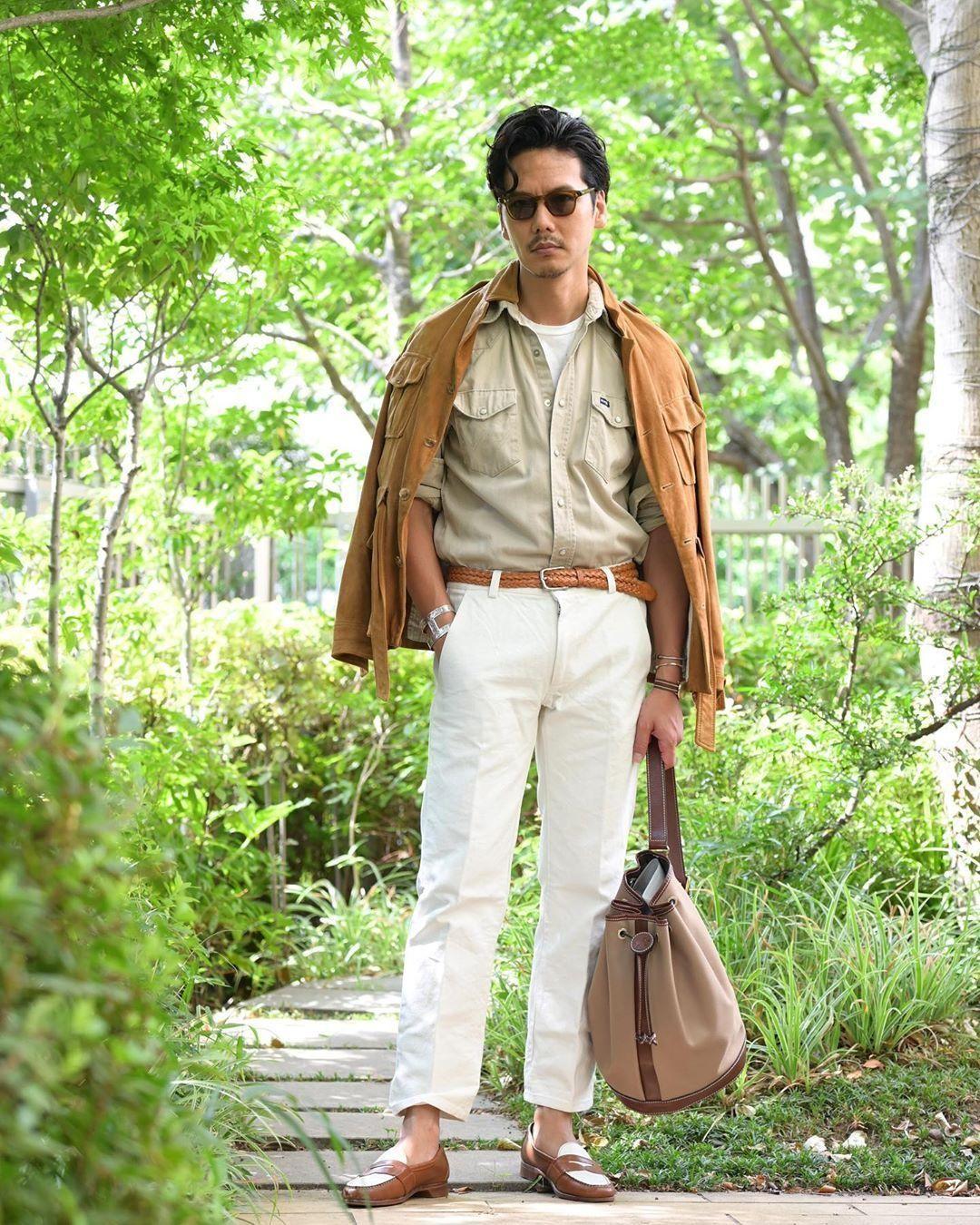 建议中年男人多穿基础色,比如 黑白灰、大地色 ,以及一些时髦但不显得装嫩的颜色, 牛仔蓝、军绿色 等。