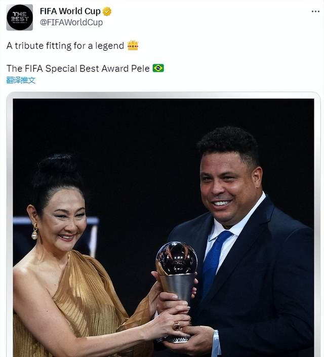 球王贝利于去年12月29日在阿尔伯特爱因斯坦医院去世,享年82岁。在离世的第60天,FIFA为贝利颁发了一个大奖,球王的遗孀、日裔妻子青木代其领取男足球员特别奖,巴西另一位传奇球星罗纳尔多当颁奖嘉宾。