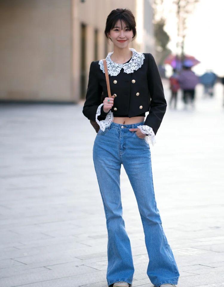 常见的马蹄裤以牛仔为主,面料具有一定弹性,增加时髦度的同时也提升了穿着实时性,塑形又百搭。