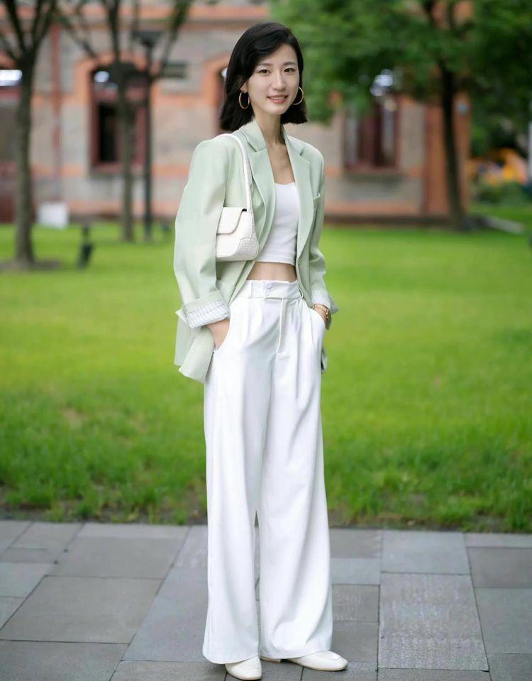 比如西服、夹克和小香风,仅露出腰身强调纤细部位,对身材起到 “扬长避短” 的效果,风格上也不那么挑人。
