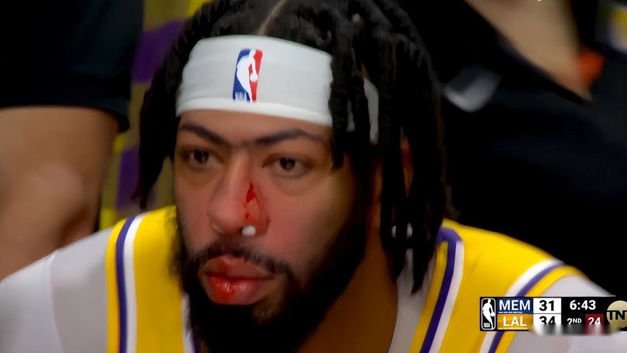 湖人主场对阵灰熊的比赛第二节比赛中,浓眉抢板后不慎鼻子被灰熊球员罗迪抓伤,直接血染赛场,裁判回看后依旧判罚普通犯规。