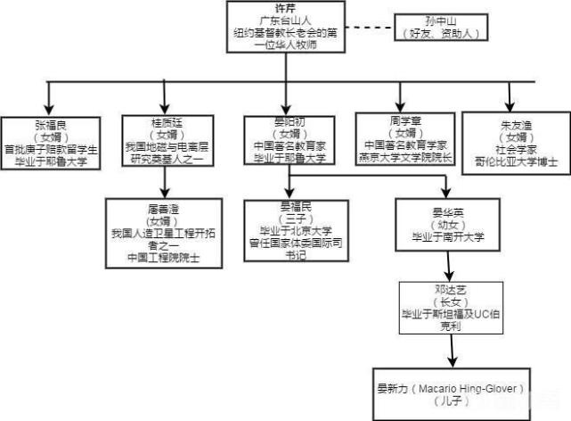 外孙女婿闻亦传。闻一多堂兄,生物学家,其女闻玉梅,中国工程院院士,中国治疗性乙肝疫苗开拓者;外孙女周懿娴,前中国女篮国家队队长、第五届全国政协委员、前中国篮协委员...... 这份名单还可以列的很长,有人曾这样评价,近代中国,或许只有宋嘉树家族(宋庆龄父亲)才能与之相提并论。