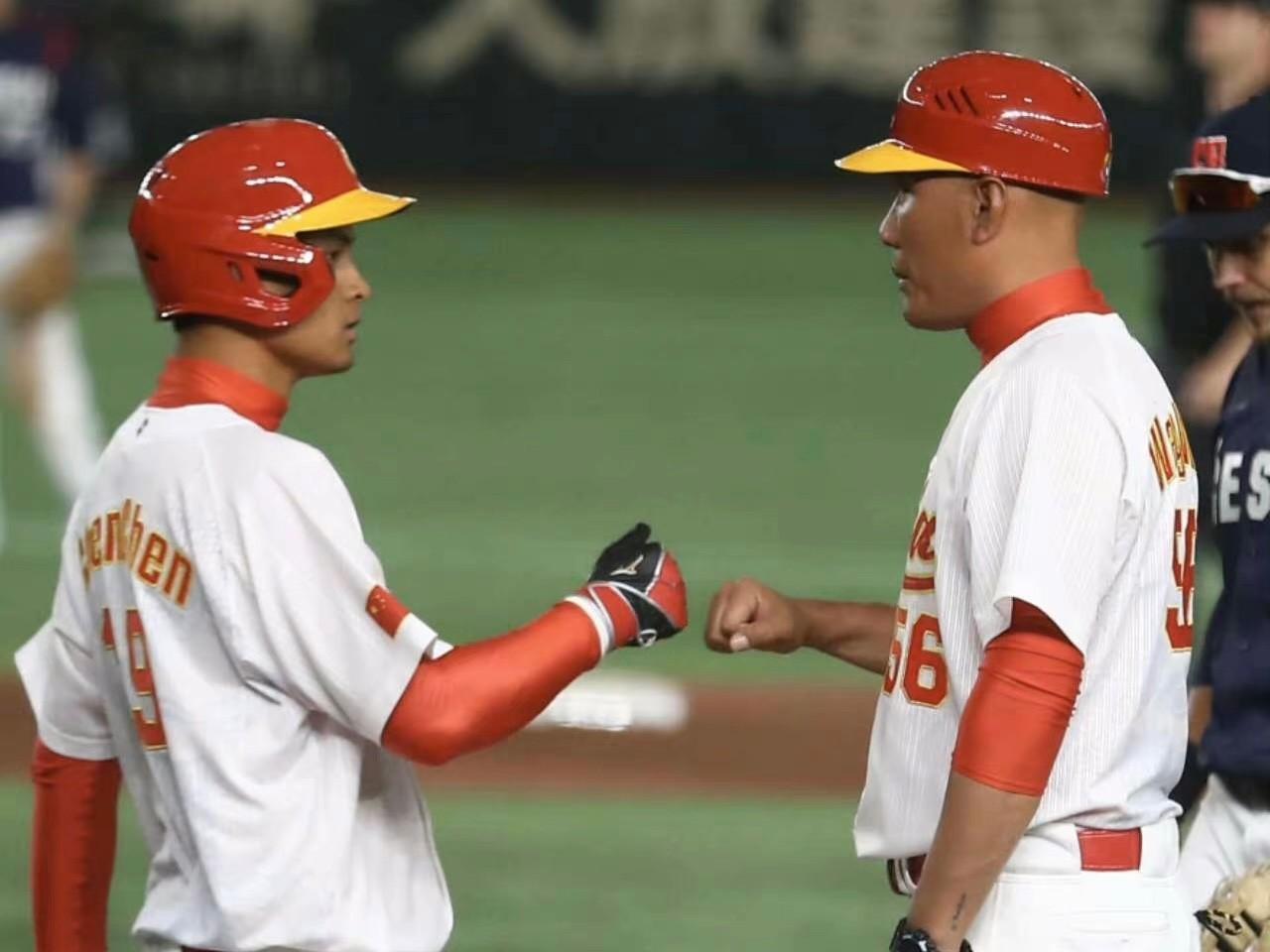 第五局比赛起,经过主教练迪恩的调兵遣将,中国队逐渐找回状态,拿下本场比赛第一分。第七局,比赛迎来精彩时刻,年近不惑的WBC四朝老将张宝树吹响反击号,率领队友一举拿下4分,此时中国队已经5:4反超比分。在场的中国球迷也纷纷挥舞起国旗,为中国队加油鼓气。
