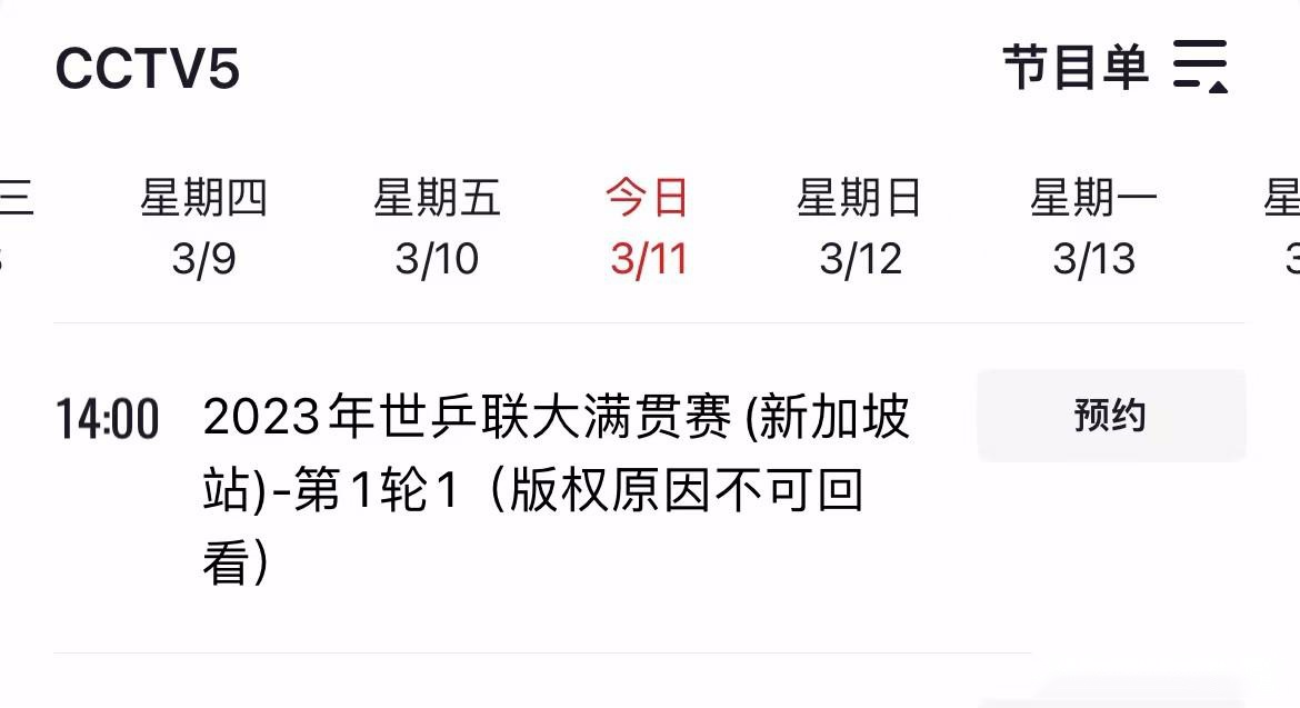 经查央视体育频道节目预告表可知, 届时CCTV5将从下午2点和晚上7点整分别转播本届赛事 。对应的转播比赛场次预计为:王楚钦vs王洋;王艺迪vs斯佐琴科;樊振东vs卡尔伯格等比赛,感兴趣的球迷们不容错过。