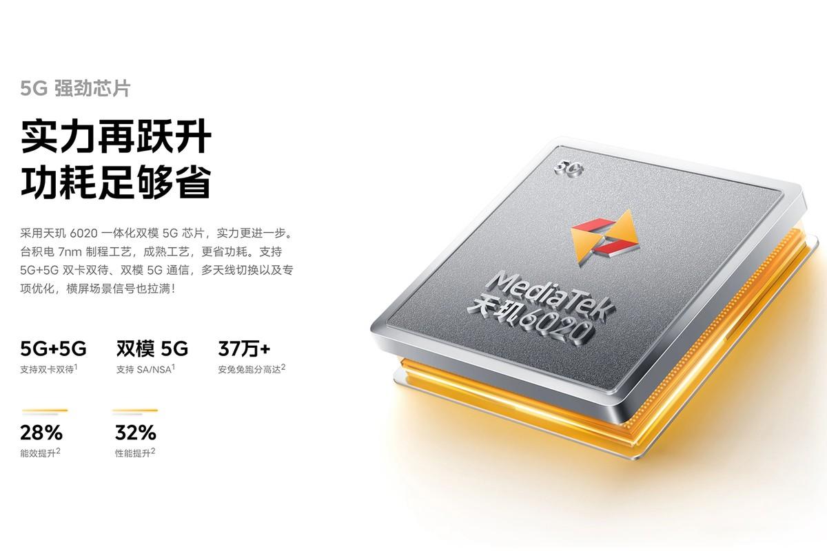 从这个价格不难发现,iQOO Z7i真是够便宜,同时配置也并不高,6.51英寸的LCD屏不支持高刷新率,摄像头1300W像素,连256GB存储容量的型号都没有。而更引人注意的是天玑6020这个芯片,应该算是天玑6000系列的首秀了。官方也给出了相关的成绩,安兔兔37万分。
