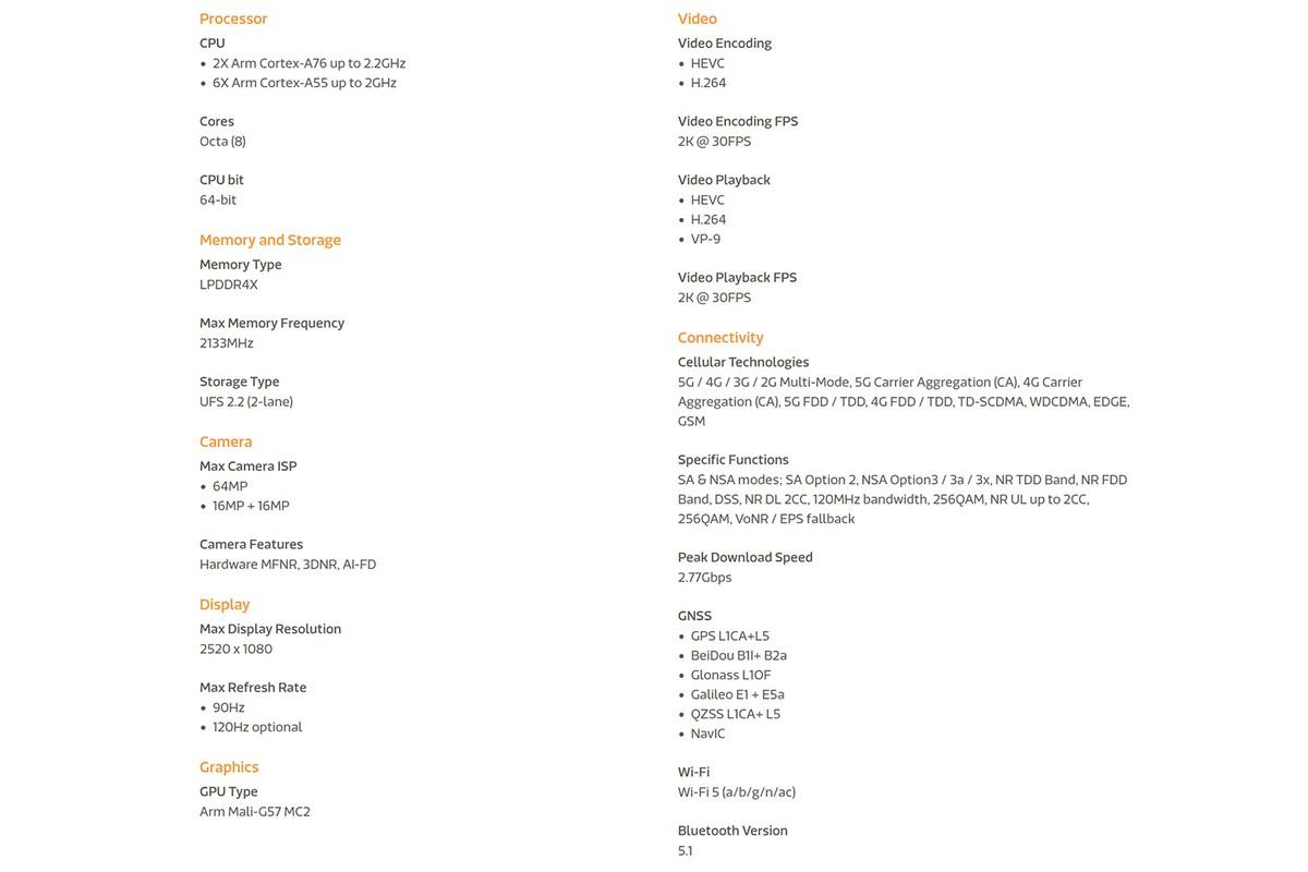 从MTK官方数据来看,天玑6020是一块八核心芯片,有2个A76核心和6个A55核心,最高主频2.2GHz,支持LPDDR4X内存和UFS2.2存储,最高支持6400W像素单摄或者1600W像素双摄,支持1080p屏幕最高可以达到90Hz刷新率,MaliG57双核GPU玩游戏可能有点难度,王者荣耀应该没啥问题。