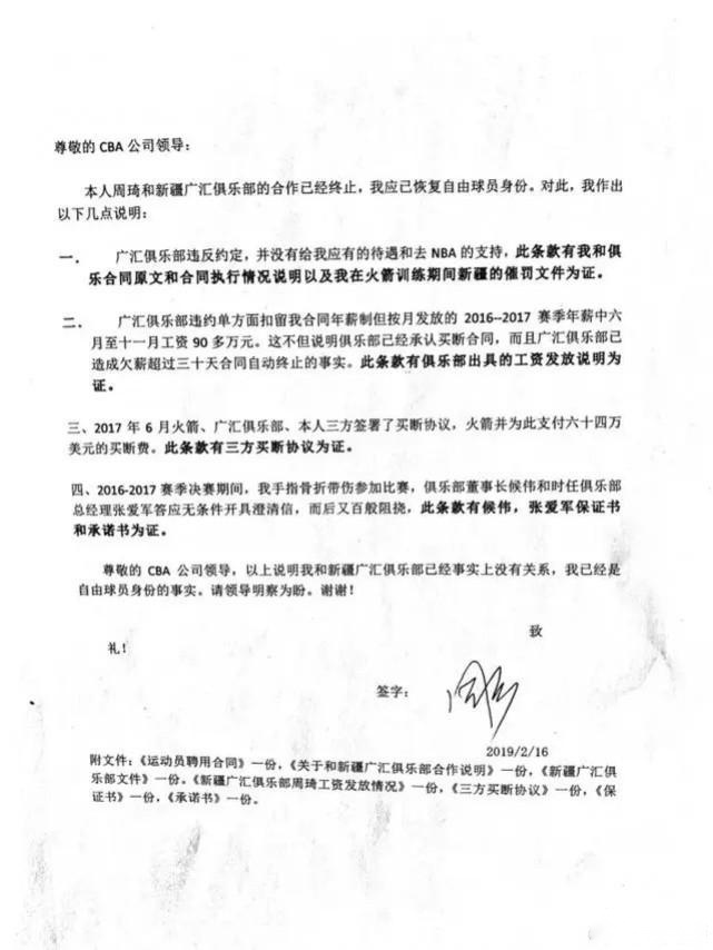 3月1日,周琦发布长文与新疆队开撕,称 新疆队欺上瞒下,欺压球员 ,同时认为篮协对新疆队的处罚客观公正。