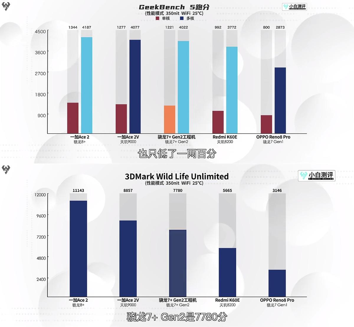 在骁龙7+ Gen2发布之后,更多人关心的是它的性能表现。有人说缩水版骁龙8+性能拉垮,有人说GPU降频这么多必定玩游戏不行,也有人比较看好这个方案能带来的性价比。那它究竟表现如何,现在看看小白评测给出的工程样机数据,基本就有答案了。