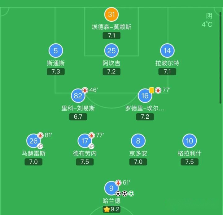 (2022/2023赛季英超第21轮曼城3:0战胜狼队的首发阵型)
