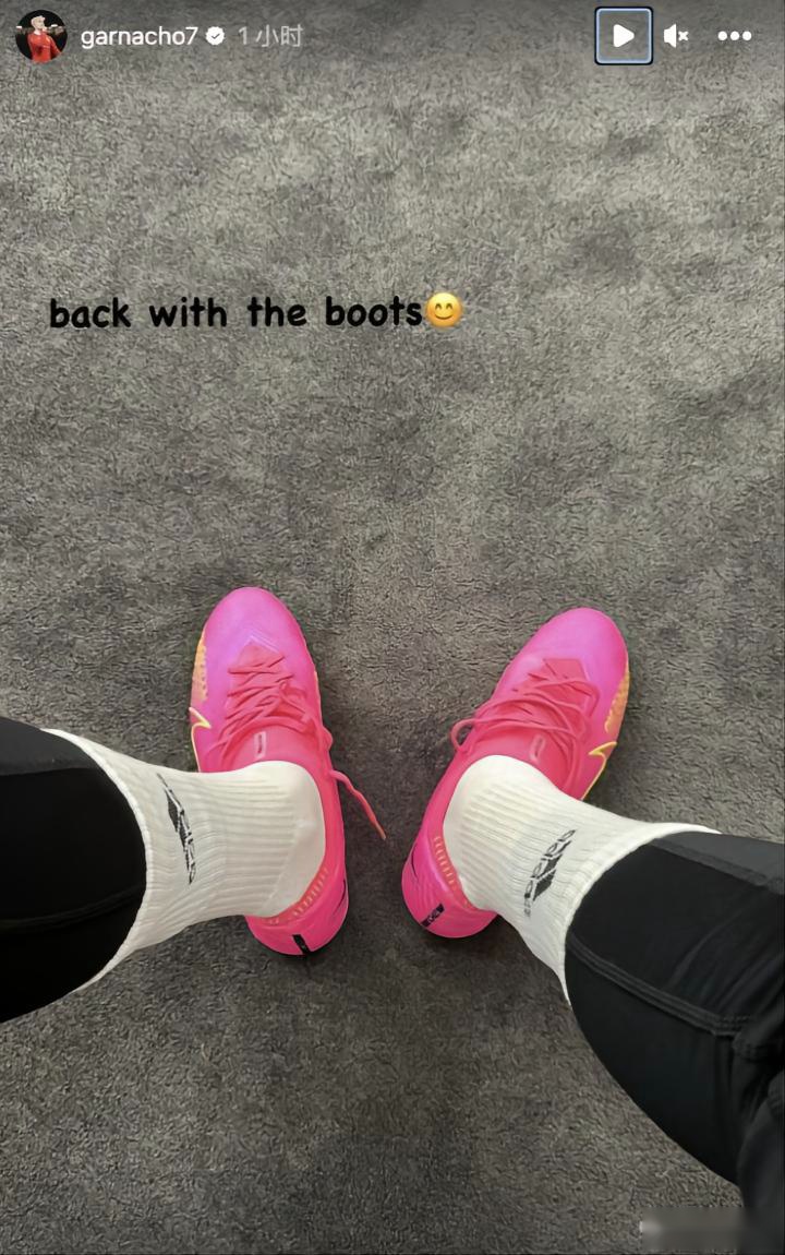 今日,加纳乔在社交媒体晒出自己再次穿上球鞋的照片。