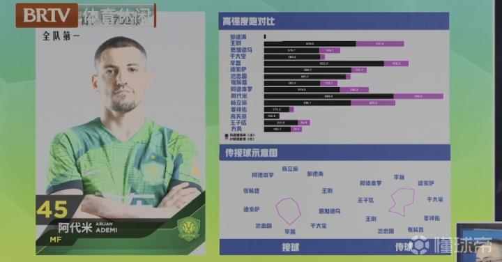 面对梅州客家,北京国安外援阿代米是全队跑动最多的球员,他的跑动距离为11702米,而且高强度跑也是非常多的。排在第二位和第三位的,分别是李磊和德索萨。