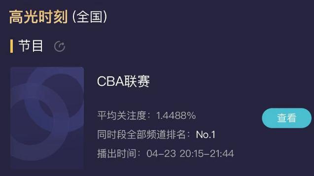 因为此前系列赛战成1-1平,所以G3就是生死大战,赢球晋级,输球被淘汰,外界的关注度极高,也体现在收视率上。这场浙江广厦掀翻广东男篮的比赛收视率超高,根据数据显示,从乒乓球的澳门冠军赛结束之后,电视台开始转播CBA季后赛,平均收视率高达1.4488%,同时间段排名全国第一,联想到是周末的黄金时间段,足以看出外界对于这场比赛有多么关注。