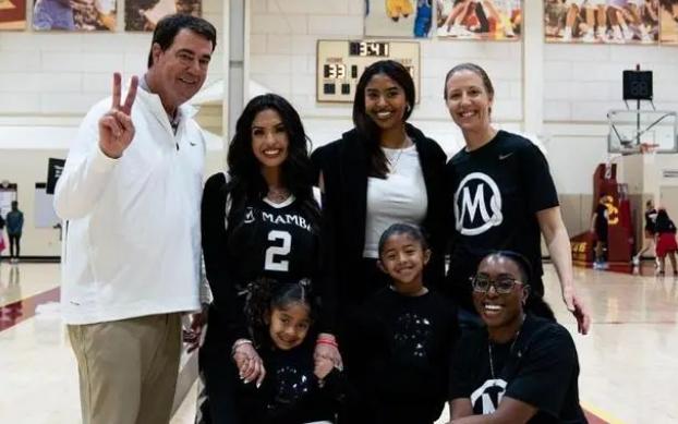科比遗孀瓦妮莎罕见穿球衣,和三女儿比安卡一起参加 在USC举办的篮球训练营。瓦妮莎穿着2号球衣,纪念自己去世的二女儿吉安娜。