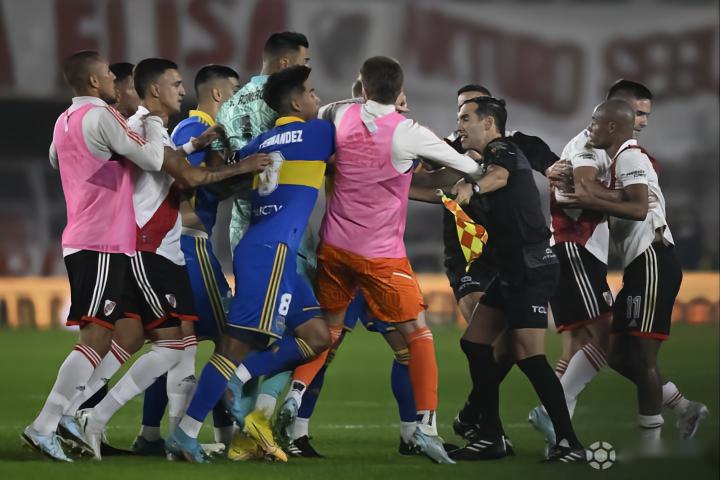 在博尔哈进球后,双方球员爆发了大规模冲突。主裁判罚下了博卡青年球员埃塞基耶尔-费尔南德斯、尼古拉斯-瓦伦蒂尼和梅伦铁尔、博卡主教练豪尔赫-阿尔米龙,以及河床队球员帕拉韦西诺、森图里翁、埃利亚斯-戈麦斯。
