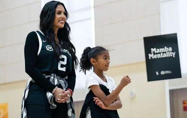 科比遗孀瓦妮莎罕见穿球衣,和三女儿比安卡一起参加 在USC举办的篮球训练营。瓦妮莎穿着2号球衣,纪念自己去世的二女儿吉安娜。