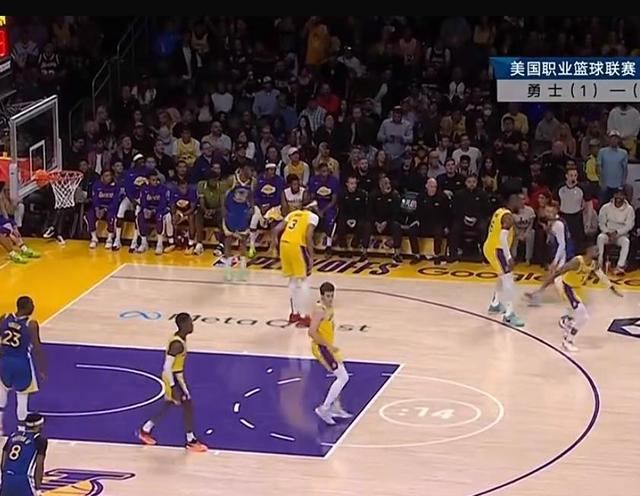次节湖人队一度领先,但后来被勇士反超,半场49-52落后。