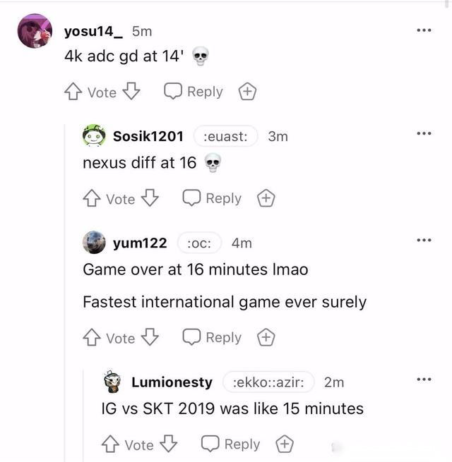 -2019年IG vs SKT好像是15分钟。