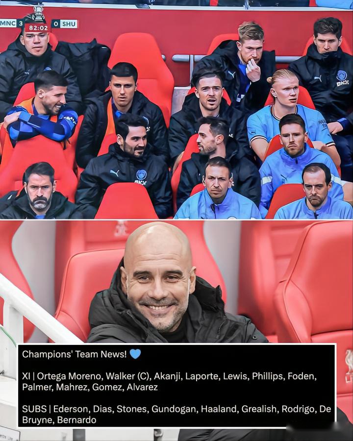 与切尔西一役,曼城替补阵容花费超过5亿欧