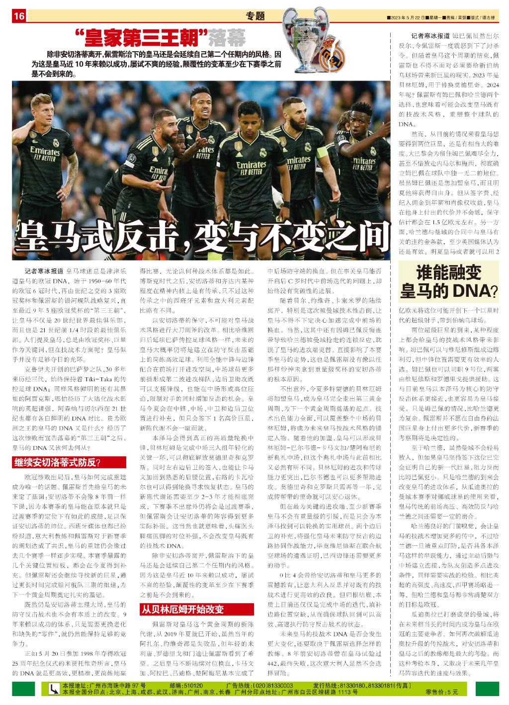 记者寒冰报道 皇马球迷总是津津乐道皇马的欧冠DNA,始于1950-60年代的欧冠6冠时代,再由世纪之交的3座欧冠奖杯和佩雷斯的银河舰队战略复兴,直至最近9年5座欧冠奖杯的“第三王朝”,让皇马不仅是20世纪世界最佳俱乐部,而且也是21世纪前1/4时段的最佳俱乐部。人们提及皇马,总是由欧冠奖杯、巨星作为关键词,但在技战术方面呢?皇马似乎并没有足够夺目的光环。