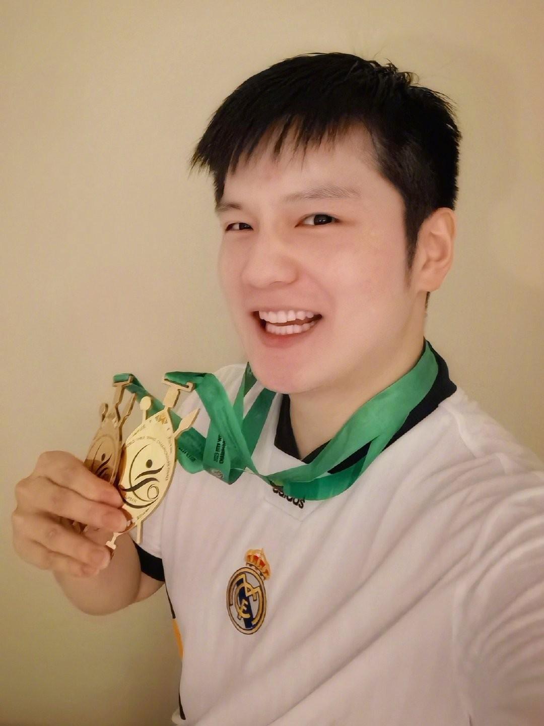 另一边,卫冕了男单冠军的小胖樊振东也在社交媒体表示了喜悦之情。身穿皇马俱乐部秋衣的他,拿着男单与男双的金牌,对着镜头龇牙咧嘴的笑着,无比可爱。皇马俱乐部也发布了微博,内容是: “恭喜我团球迷樊振东收获德班世乒赛男单以及男双两大冠军!”