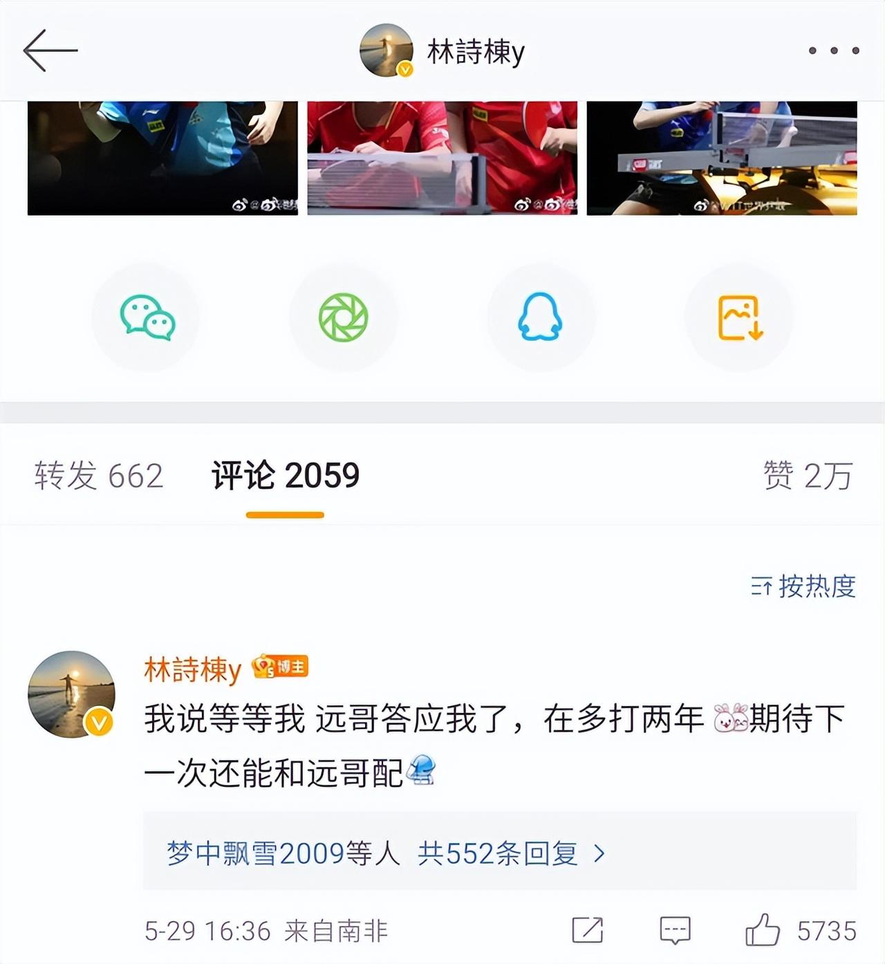 林高远虽然没有帮林诗栋站上世乒赛男双领奖台,但是小石头却依旧很崇拜林高远,在赛后甚至发声:“我说等等我,远哥答应我了,再多打两年,期待下一次还能和远哥配!”两人的感情令人感动!
