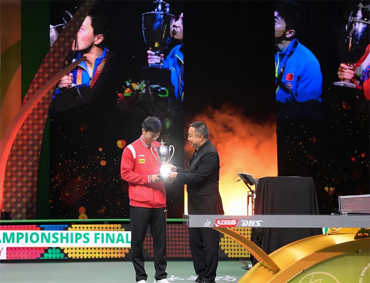 没有对比就没有伤害,“双圈大满贯”马龙在德班收获了圣勃莱德杯的复制品,因为他是国乒男队历史上第二个能够实现世乒赛男单冠军三连庄的选手,无论是大满贯还是世乒赛和奥运男单冠军的数量,站在巨人肩膀上继往开来的马龙又把这项运动的历史纪录推向一个新的高潮!未来,樊振东、王楚钦们能否追上马龙这位传奇大哥的脚步呢?