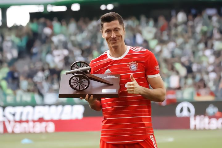 从2017/18赛季起,一直到2021/22赛季,象征着最佳射手的德甲小钢炮连续五年被莱万获得。这使他追平了帕潘(1988-1992)和梅西(2017-21)的纪录,他们都是连续五年获得各自联赛的金靴。