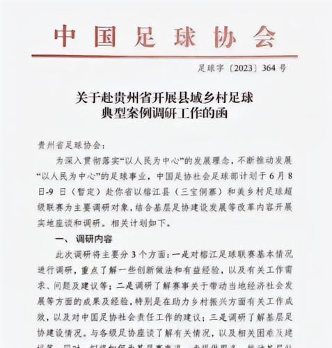 此外,网络上还流传出了一份“关于赴贵州省开展县域乡村足球典型案例调研工作的函”,甚至有模有样写着“足球字(2023)364号”字样,但目前中国足协官方网站及主流权威媒体记者均没有发布过这样的文件和消息。