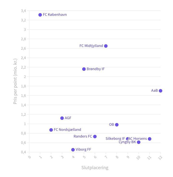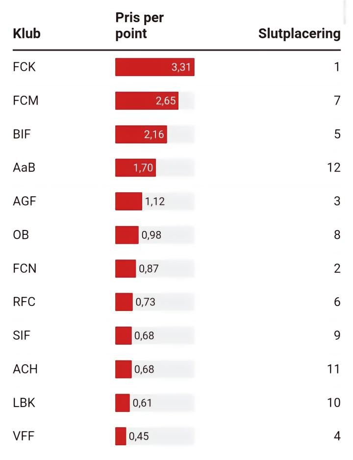 但与此同时,人们也对大俱乐部存在误解。他们认为哥本哈根队每分耗钱量的飙升也意味着哥本哈根队在这方面是一个糟糕且令人失望的赛季,这同样也是一个错误的结论。
