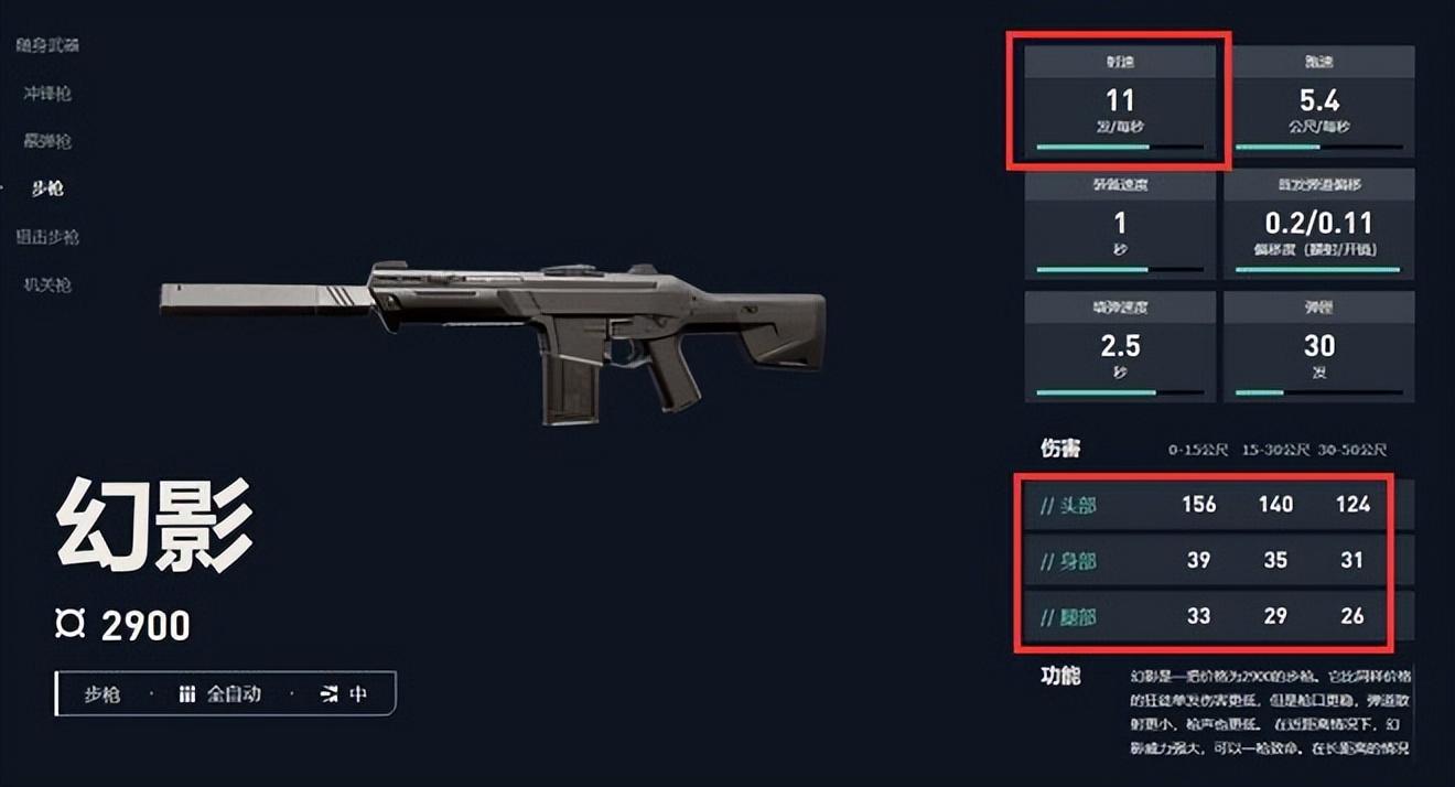要说我最推荐大家使用的武器是哪一把,我肯定会给大家推荐幻影这把武器了,个人是不太赞成大家一开始就直接用狙击或者喷子的,因为再怎么说,容错率比较低,特别是无畏契约的喷子和狙还跟其他游戏的不一样,而这把武器的优势是比较强的,幻影作为步枪家族里面的考把子,武器的属性整体上也算是可圈可点的。