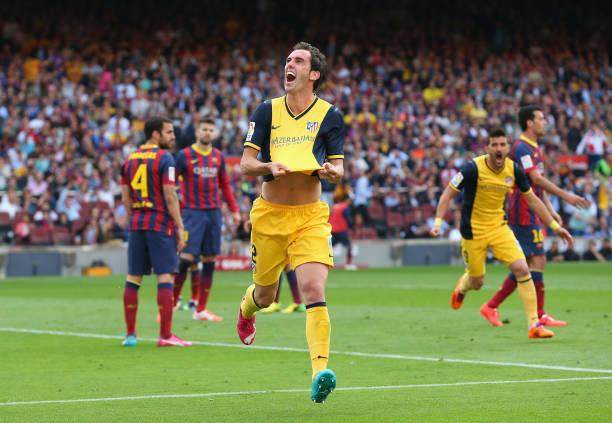 相比于在防线上的一柱擎天,戈丁在2014年的三记决定性头槌破门更加令人印象深刻。2013-14赛季西甲末轮,做客诺坎普球场的马竞至少需要一场平局才可以确保夺冠,上半场开场不久马竞接连折损两将,科斯塔和阿尔达·图兰先后伤退,桑切斯的世界波又让巴萨取得领先。危急时刻戈丁挺身而出,下半场接到右侧角球,一头将球狠狠砸进巴萨大门,这个进球帮助马竞压过皇萨,抢下当赛季西甲冠军。接下来马竞在欧冠决赛迎战皇马,戈丁上半场抓住卡西利亚斯出击失误的头球破门,如果不是拉莫斯在第93分钟救主,戈丁本可为马竞带来队史第一座欧冠奖杯,可惜造化弄人。