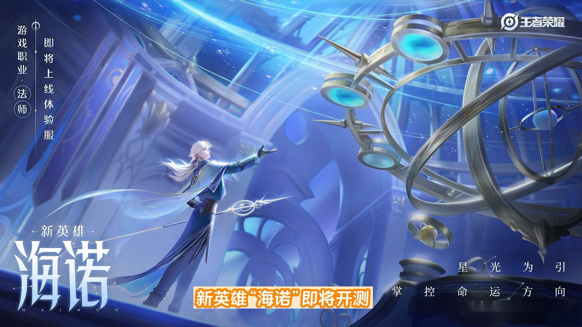 通过官方预告图获知,海诺职业定位法师,也是2023年推出的首位中单英雄,是一位有着白色长发,身穿蓝色长袍和披风的青年,手持加入圆环和蓝宝石等元素制作的“命运神杖”,颜值造型并不输人气法师诸葛亮。获取方式方面,“海诺”没有意外与小满、亚连一样都是13888金币英雄,可消耗58个英雄碎片兑换,同时上线后,玩家完成试玩任务可以得到半价金币抵扣卡,如此最低0金币免费兑换。