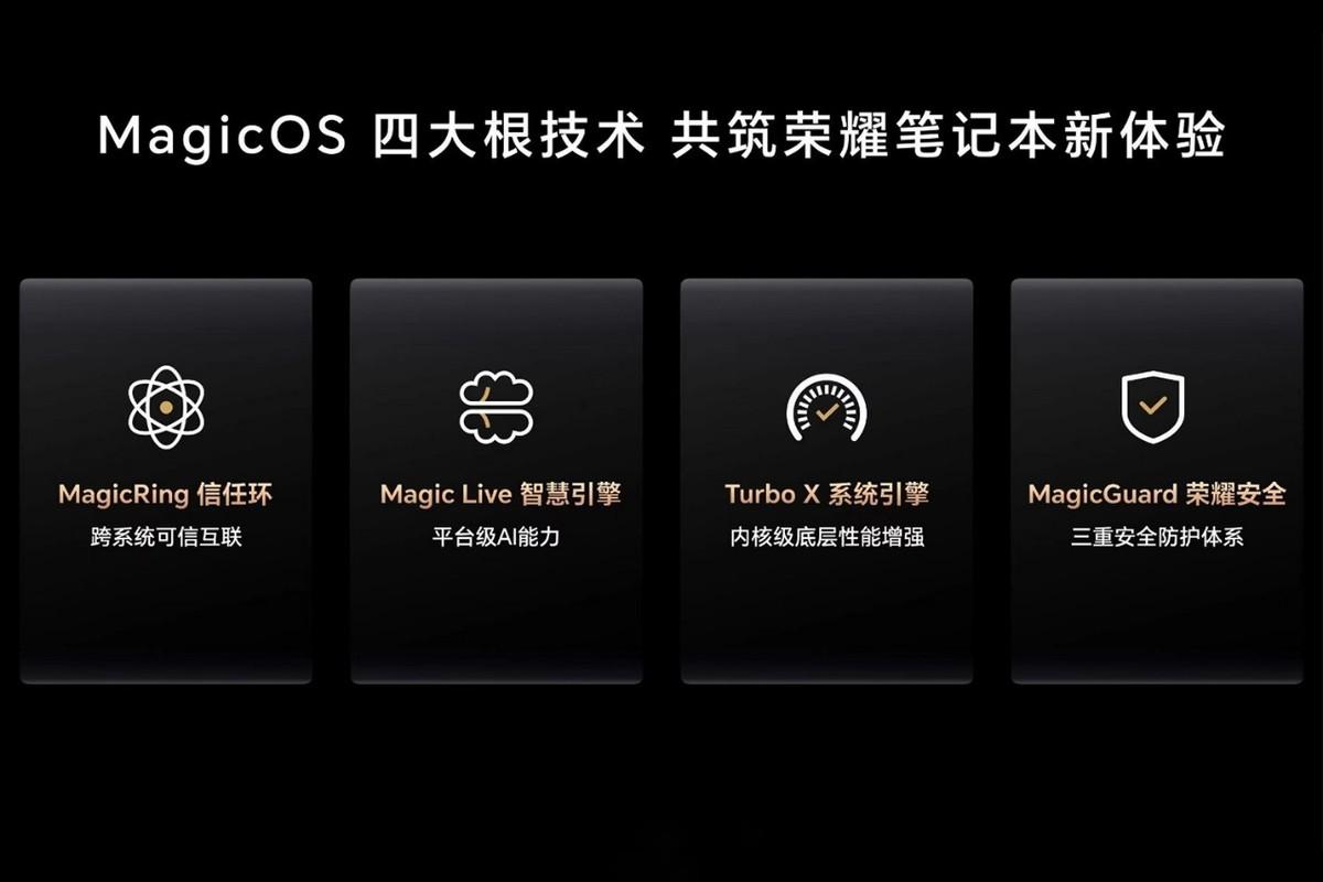 至于说荣耀两款机型最大的卖点,更多还是在软件层面。比如荣耀的Turbo X系统引擎,包括OS Turbo等,这在以前的MagicBook X系列笔记本上都是没有的。荣耀还下放了更多功能,包括包括了和手机端的键鼠共享、通话共享、通知共享、网络共享、摄像头共享,以及手机和笔记本之间的接续,使用荣耀笔记的话,可以直接在PC端继续做手机上没完成的工作。