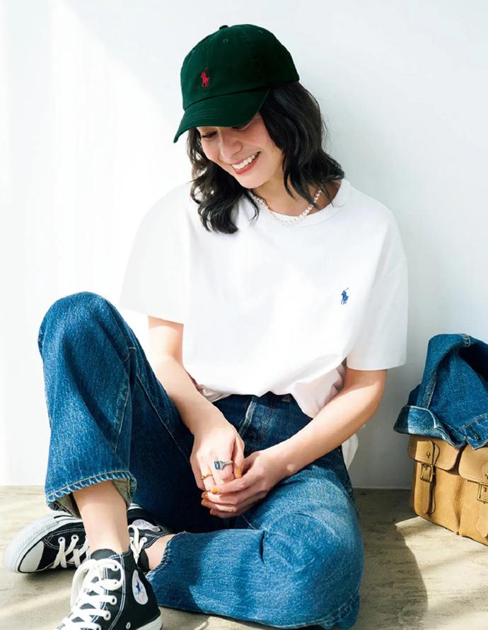 配饰是造型中的点睛之笔,尤其是在白T恤与牛仔裤这种基础搭配中,更不能少了配饰的点缀。棒球帽自带时尚减龄的风格效果,与t恤和牛仔裤风格完美契合,有助于强化整体造型协调感,同时也能起到遮阳、显脸小的效果,美观又实用。