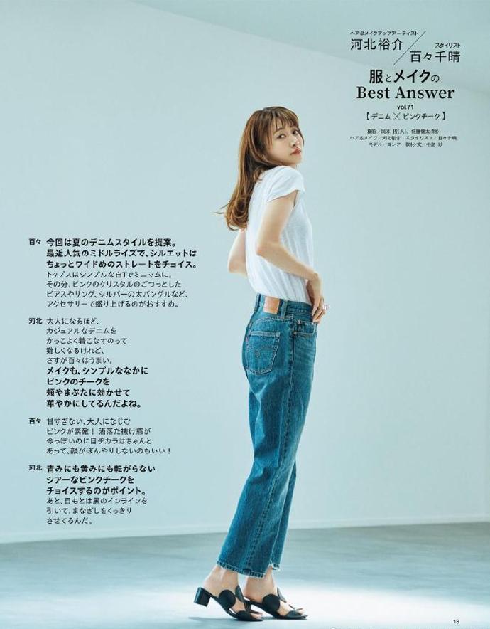高跟鞋的款式五花八门,在选款上只要避免过于成熟显老的款式即可,像基本的高跟凉鞋就比较合适,无论牛仔裤是九分长度还是全长裤型,都不影响整体身材比例的呈现,视觉上看起来显高显瘦。
