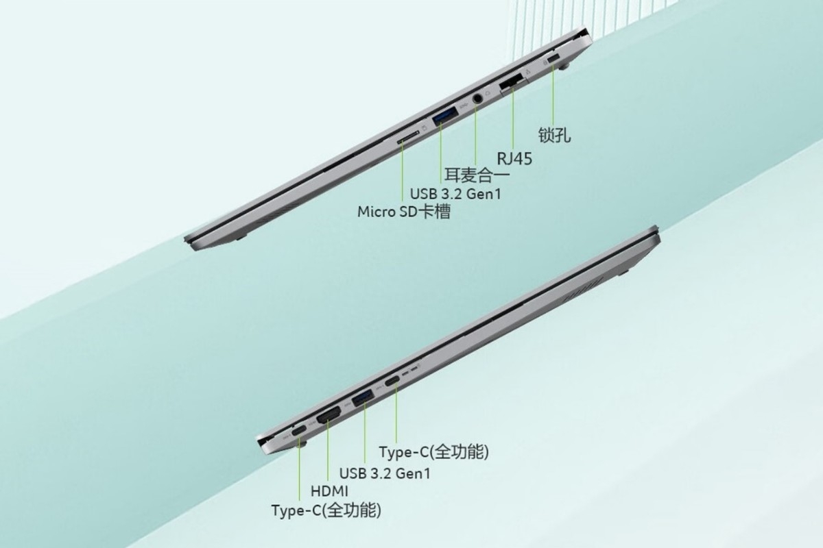 扩展接口部分,笔记本给出了2A2C的方案,还有HDMI接口和网卡接口,在14英寸笔记本中算是非常能打的了。这款笔记本还配备了MicroSD读卡器。如果外出办公的话,不需要扩展坞之类的外设支持。