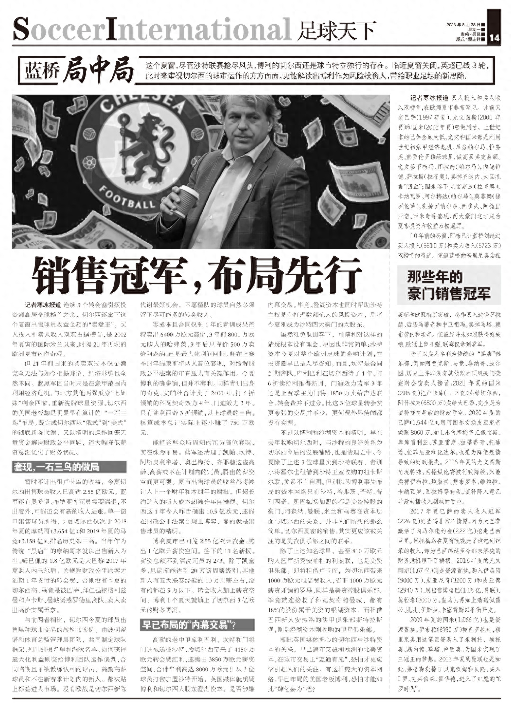 【蓝桥局中局】这个夏窗,尽管沙特联赛抢尽风头,博利的切尔西还是球市特立独行的存在。临近夏窗关闭,英超已战3轮,此时来审视切尔西的球市运作的方方面面,更能解读出博利作为风险投资人,带给职业足坛的新思路。