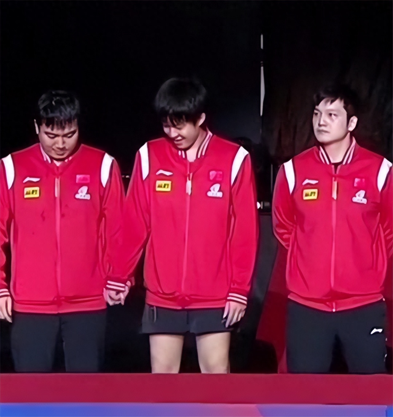 在颁奖仪式上,还出现了让人意外的一幕,韩国人设计的冠军台太高了,孙颖莎小短腿差点摔下来,上去时被1米76的王曼昱拉了一把。而在男乒方面,这也困扰着“大胖”梁靖崑,他最近又胖了,决赛上场时甚至都没办法把上衣勒进短裤里,可见这次他的增重有多明显,自然会影响他的移动能力。