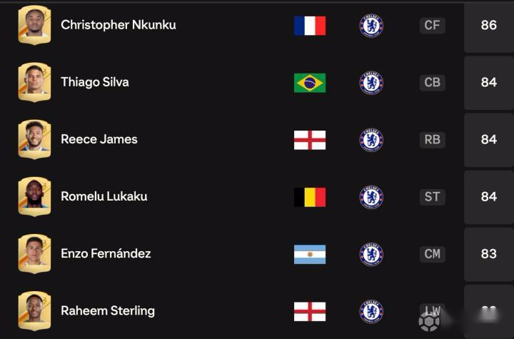 FC24切尔西球员能力值如下: