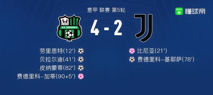 北京时间9月24日萨索洛vs尤文图斯,费德里科-基耶萨得到全场最高的8.1分,费德里科-加蒂得到全场最低的5.8分
