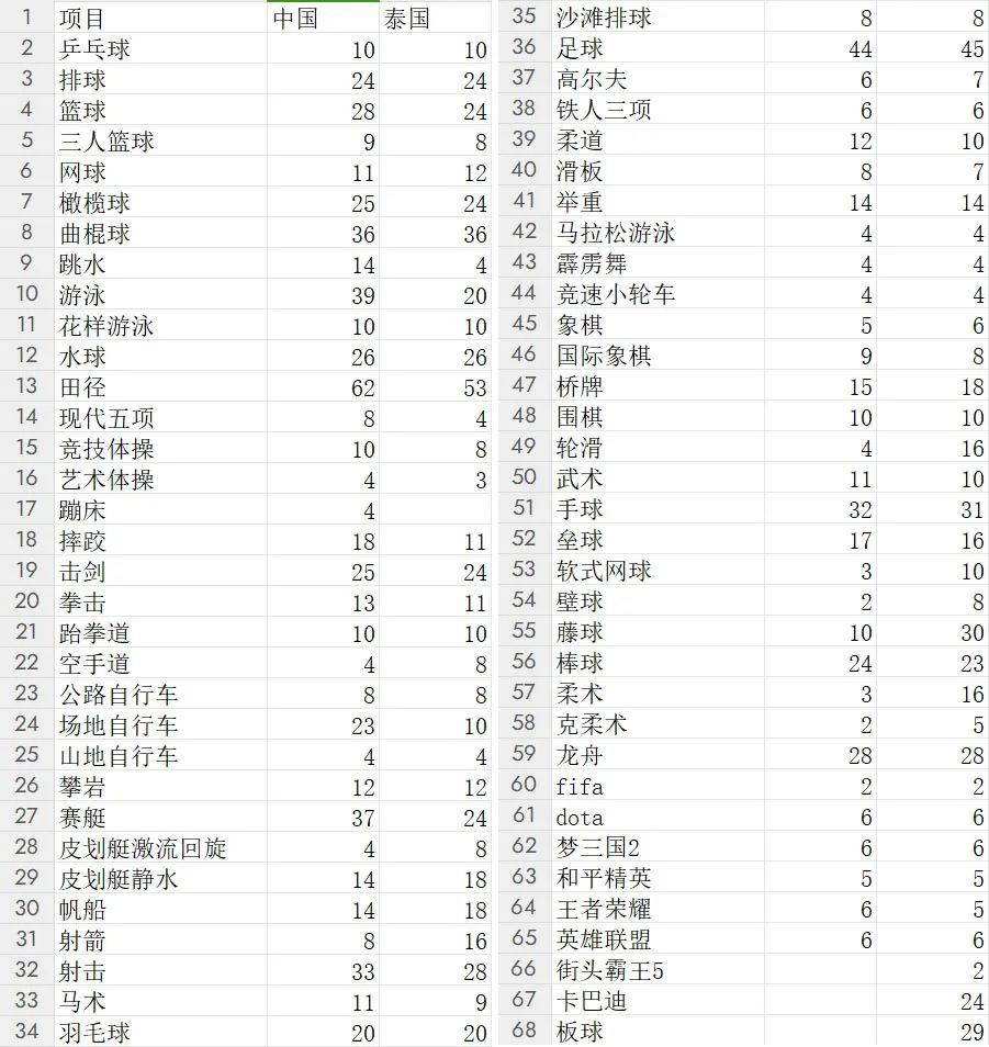 此次中国泰国参赛人数对比
