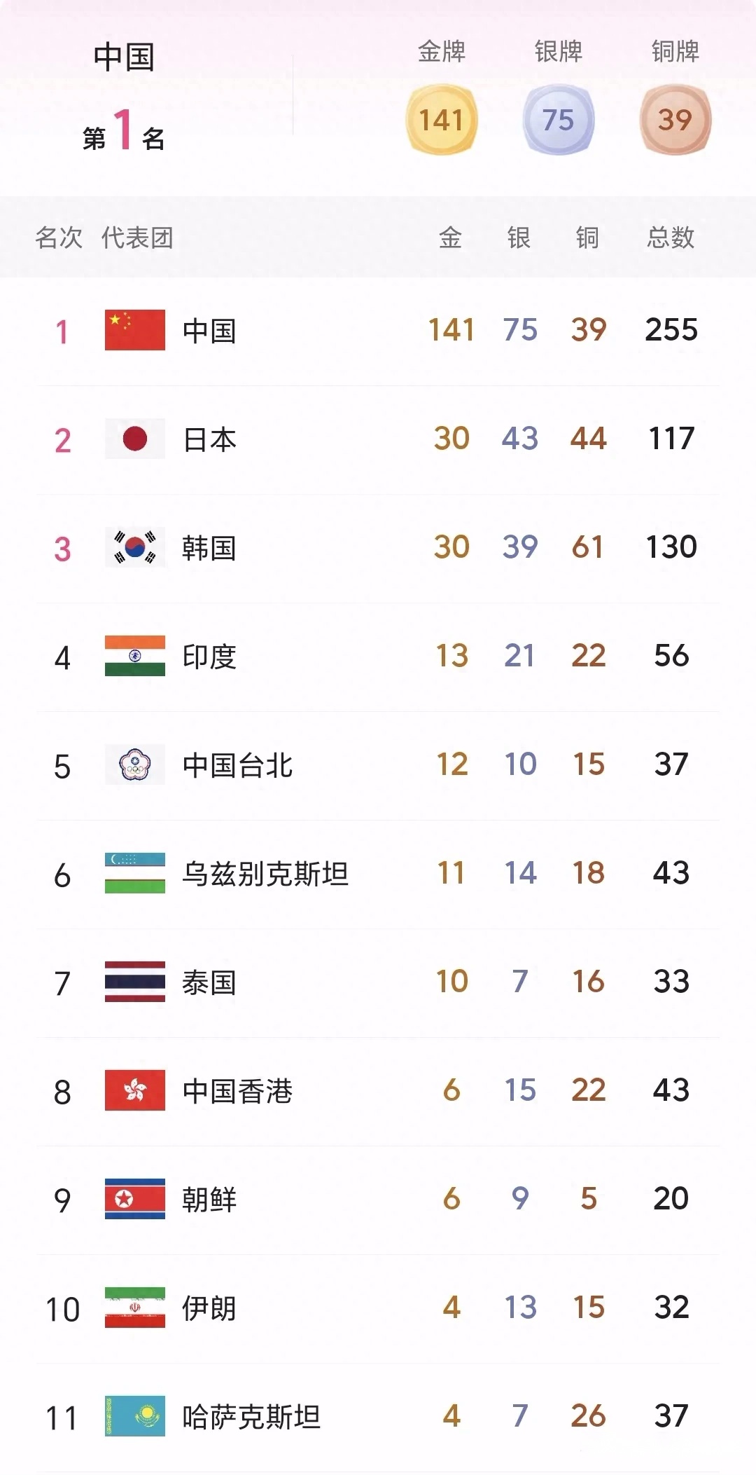 你怎么看目前最新的亚运会奖牌榜?欢迎在评论区讨论。