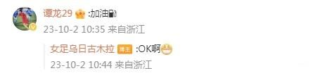 亚运会男足1/4决赛,中国男足亚运队0-2不敌韩国队,无缘四强。随后,中国女足队员乌日古木拉晒出了她与男足亚运队老将谭龙的合影,并为谭龙送去了祝福。
