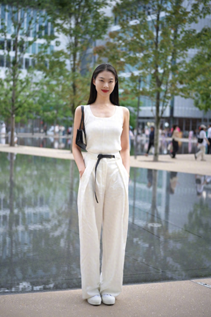 尤其是对于下半身偏胖的女生来说,穿宽腿裤可以起到 “遮肉显瘦” 的作用,进而优化整体身材比例。